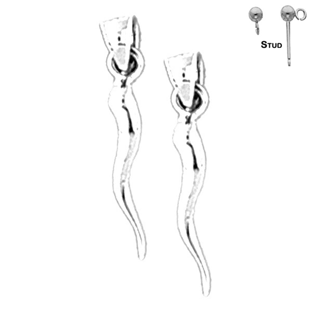 Sterling Silver 22mm 3D Cornicello / Italian Horn Earrings (White or Yellow Gold Plated)