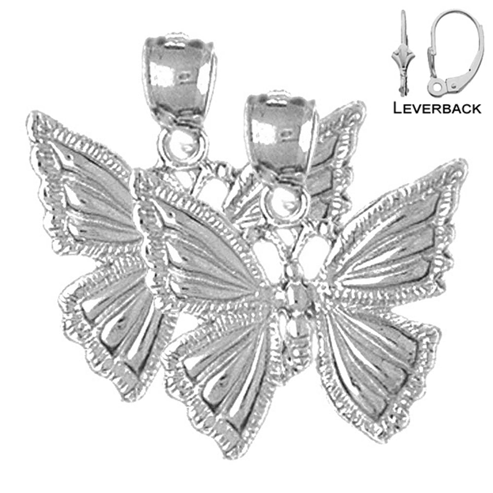 Sterling Silver 22mm Butterflies Earrings (White or Yellow Gold Plated)