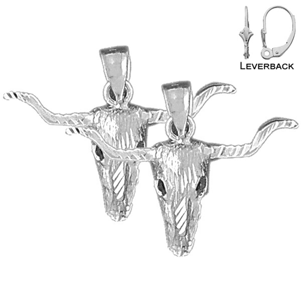 Sterling Silver 22mm Steer Head Earrings (White or Yellow Gold Plated)