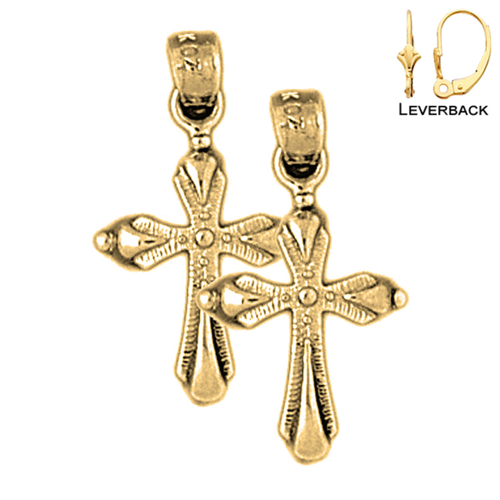 Sterling Silver 23mm Budded Cross Earrings (White or Yellow Gold Plated)