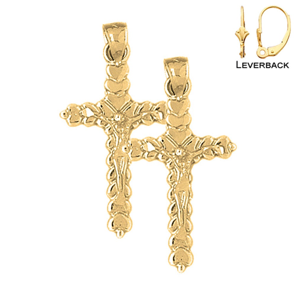 Yellow Gold-plated Silver 23mm Budded Crucifix Earrings