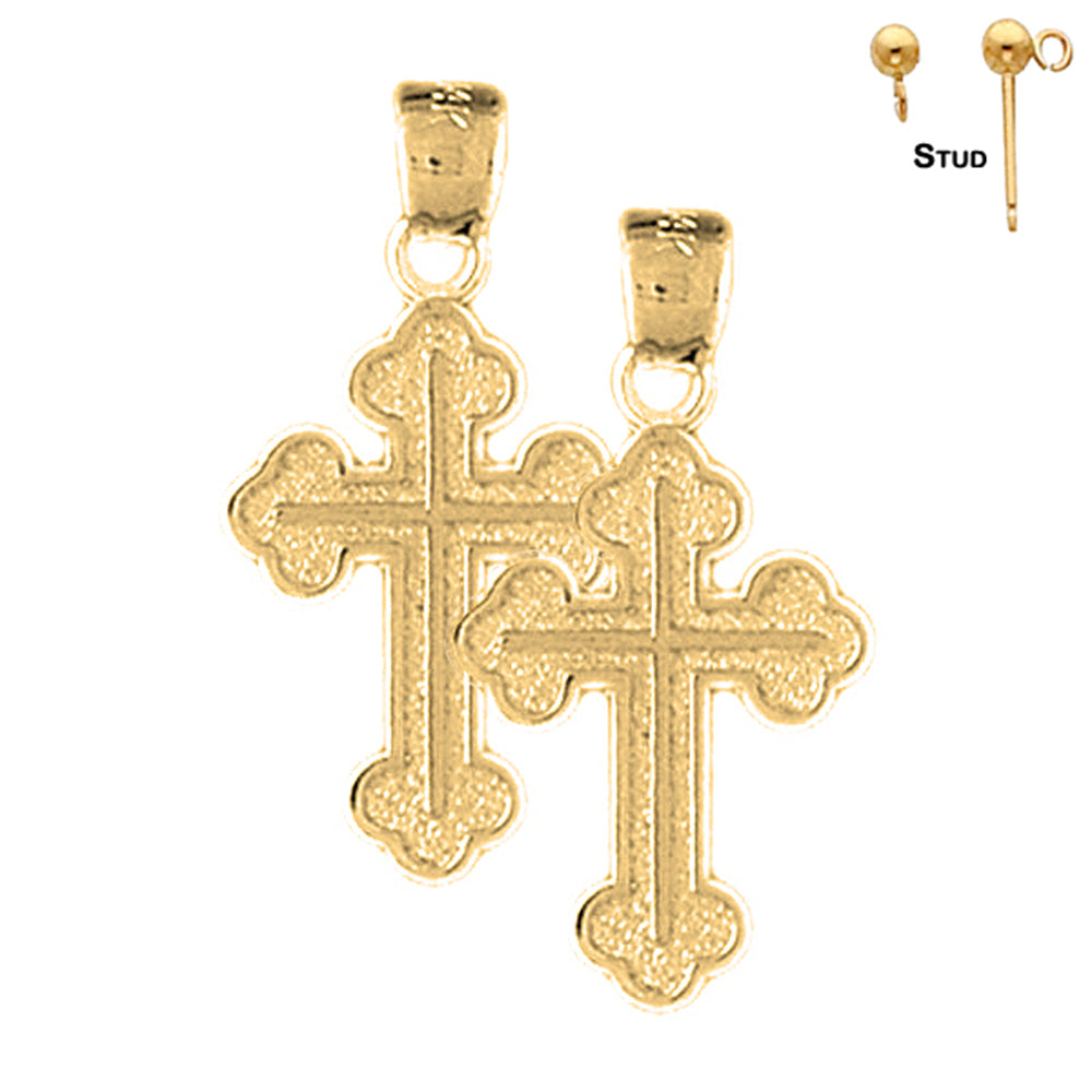 Sterling Silver 27mm Budded Cross Earrings (White or Yellow Gold Plated)