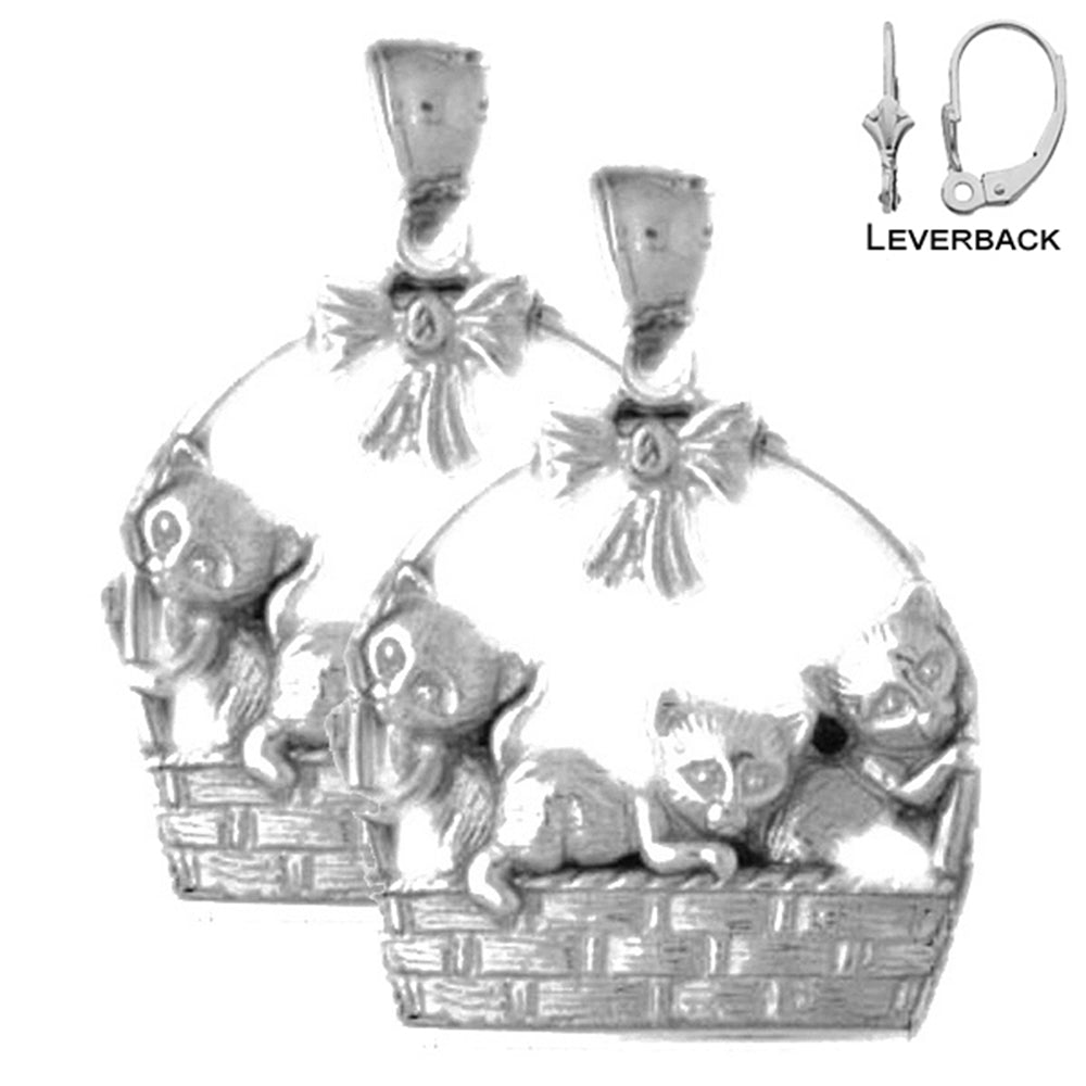 Sterling Silver 27mm Cat Earrings