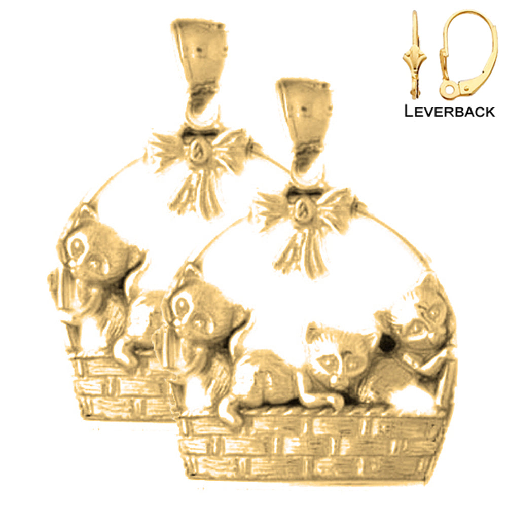 Yellow Gold-plated Silver 27mm Cat Earrings