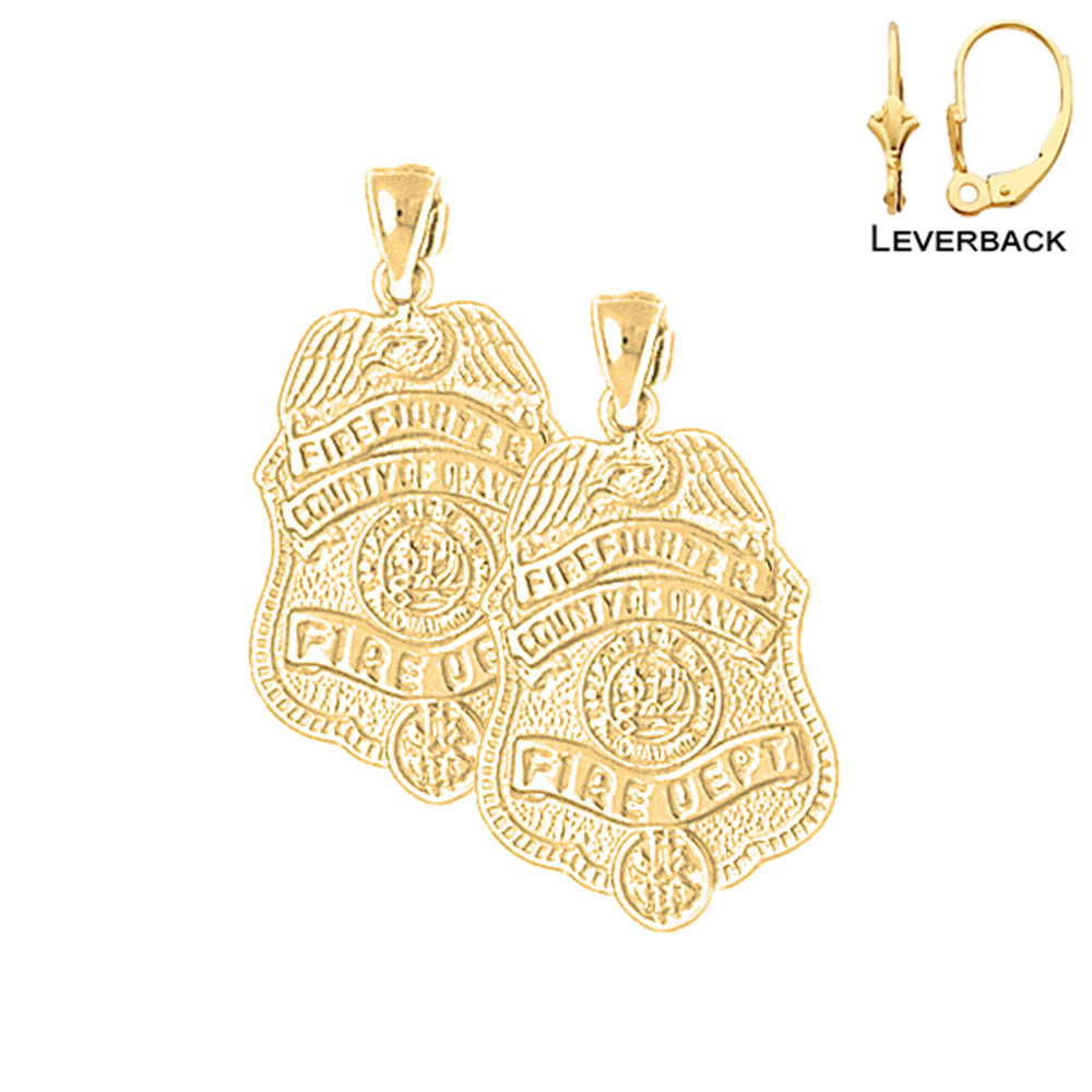 Yellow Gold-plated Silver 30mm Orange Fire Department Earrings
