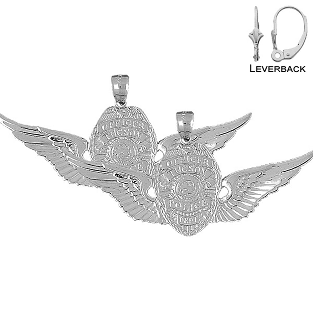 This is a stunning sterling silver 32mm tucson police earrings. This sterling silver earrings measures 32 mm in length by 65 mm width. JewelsObsession creates all our silver jewelry in our state of the art manufacturing facility.