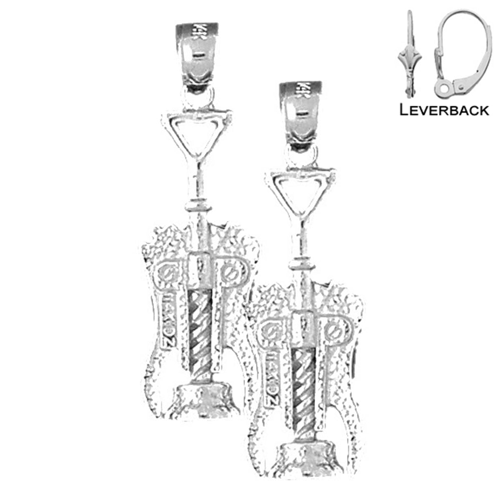 Sterling Silver 34mm 3D Cork Screw Earrings (White or Yellow Gold Plated)
