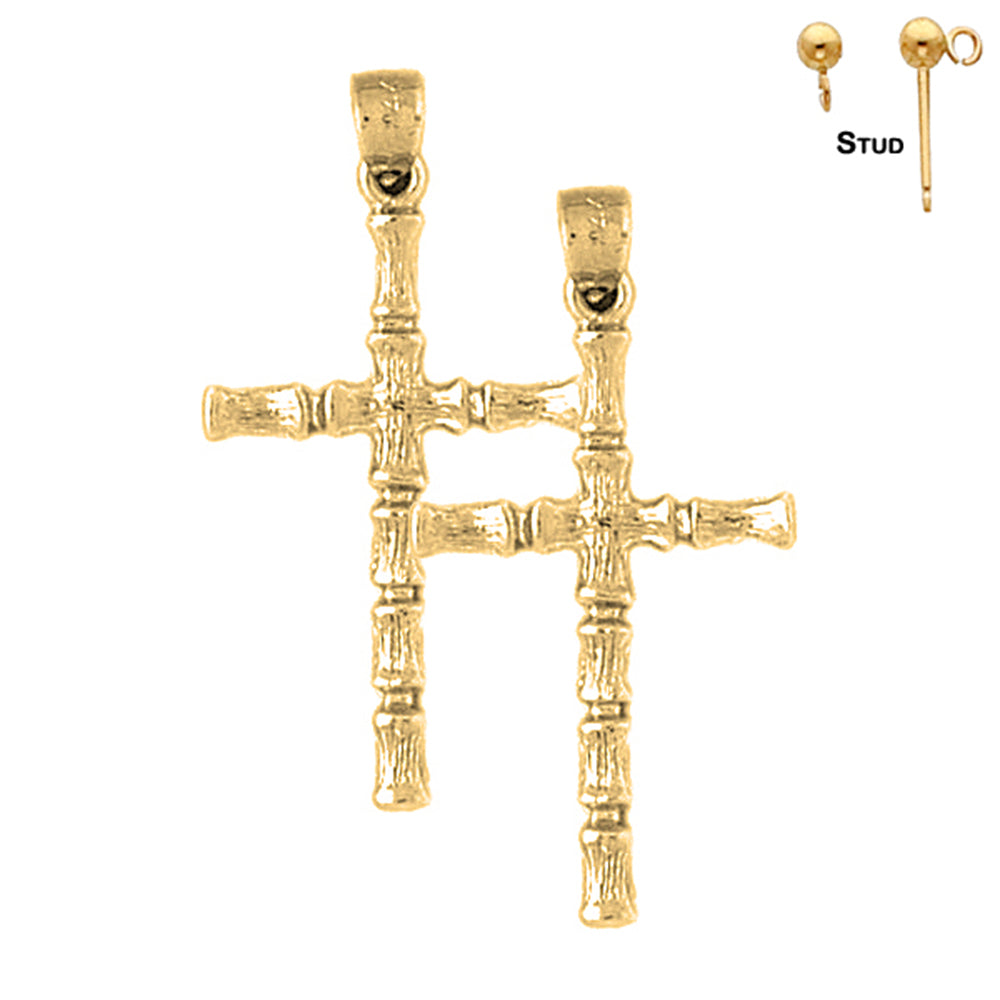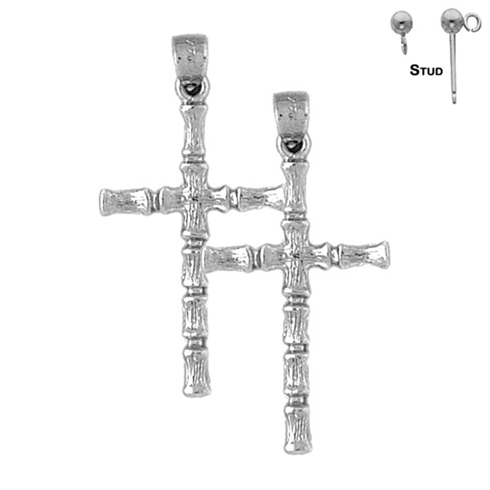 Sterling Silver 34mm Bamboo Cross Earrings (White or Yellow Gold Plated)