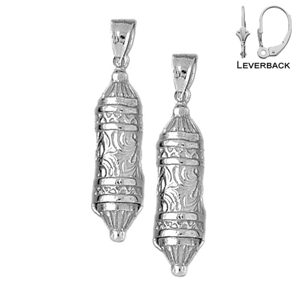 Sterling Silver 34mm Jewish Torah Scroll Earrings (White or Yellow Gold Plated)