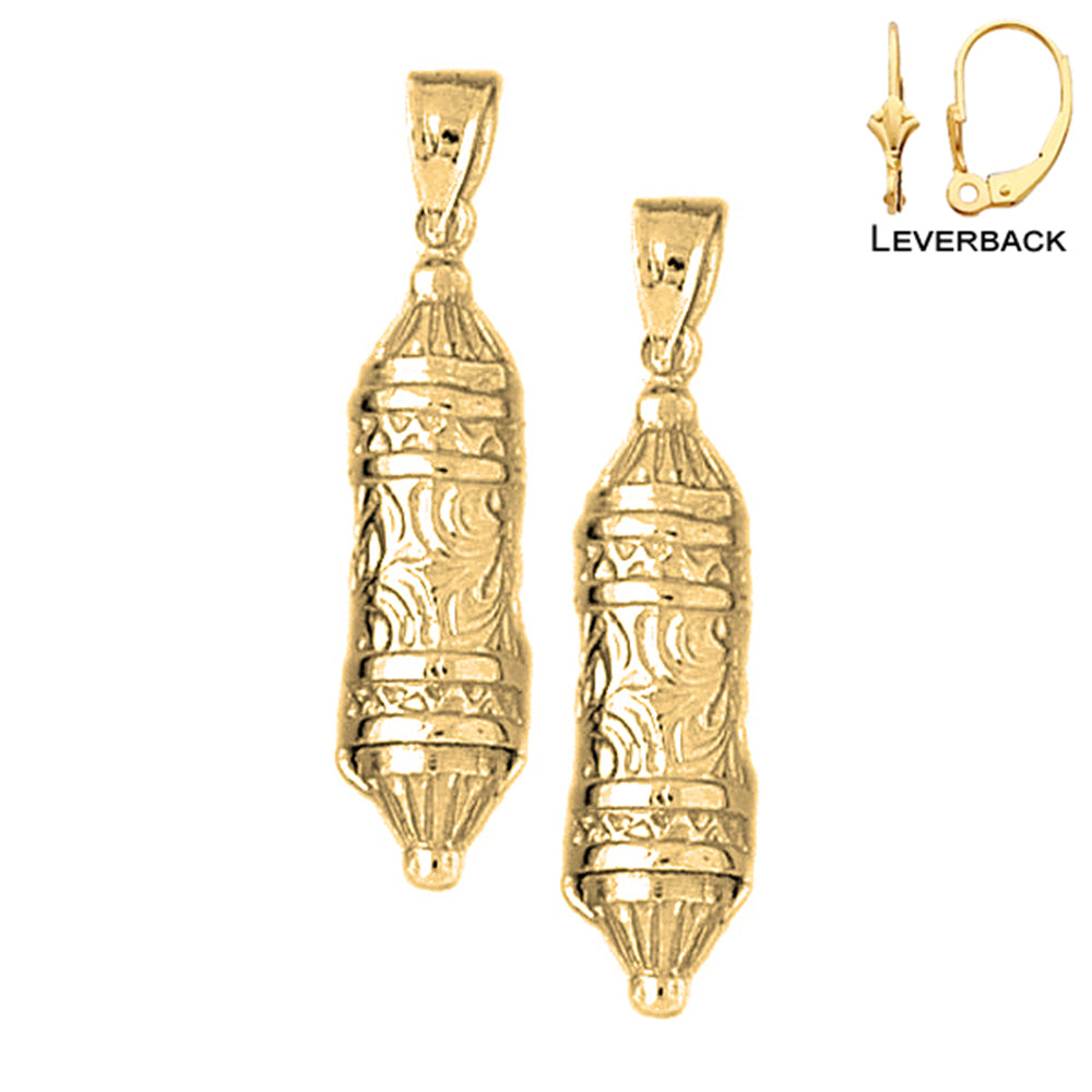 Yellow Gold-plated Silver 34mm Jewish Torah Scroll Earrings
