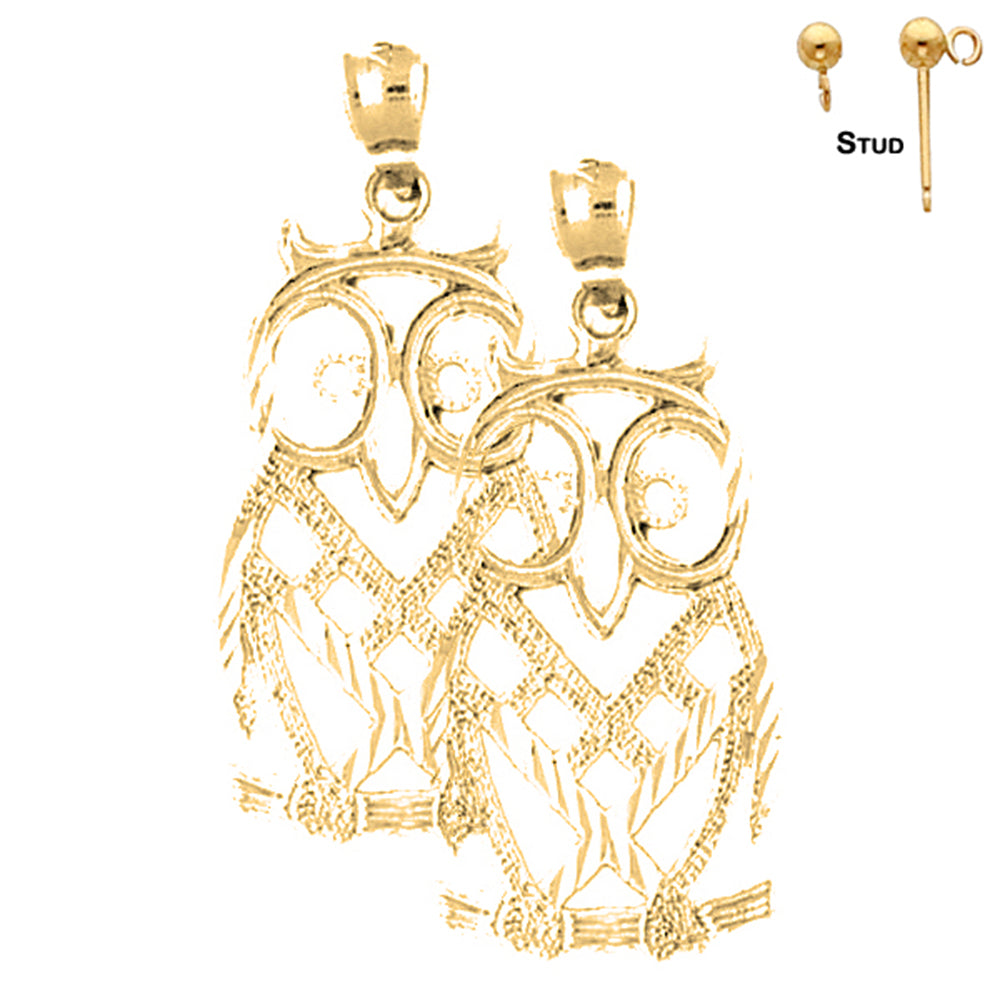 Sterling Silver 34mm Owl Earrings (White or Yellow Gold Plated)