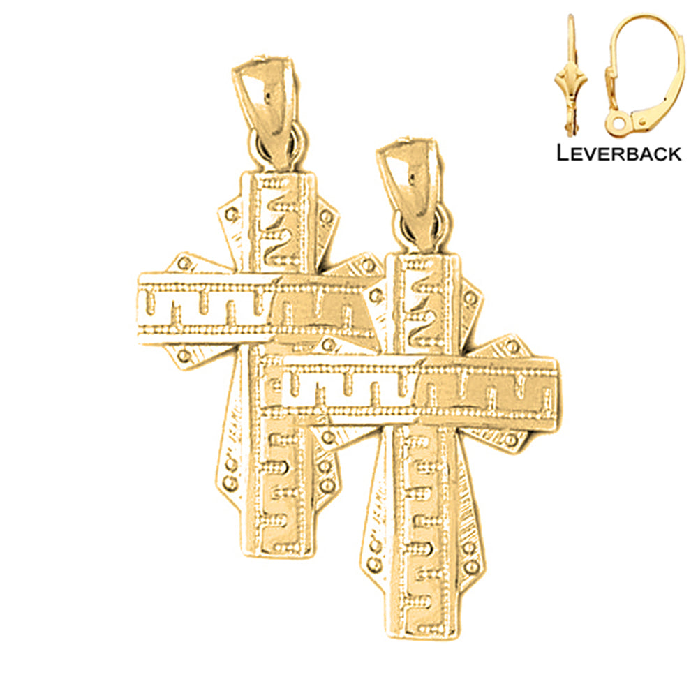Yellow Gold-plated Silver 35mm Greek Cross Earrings