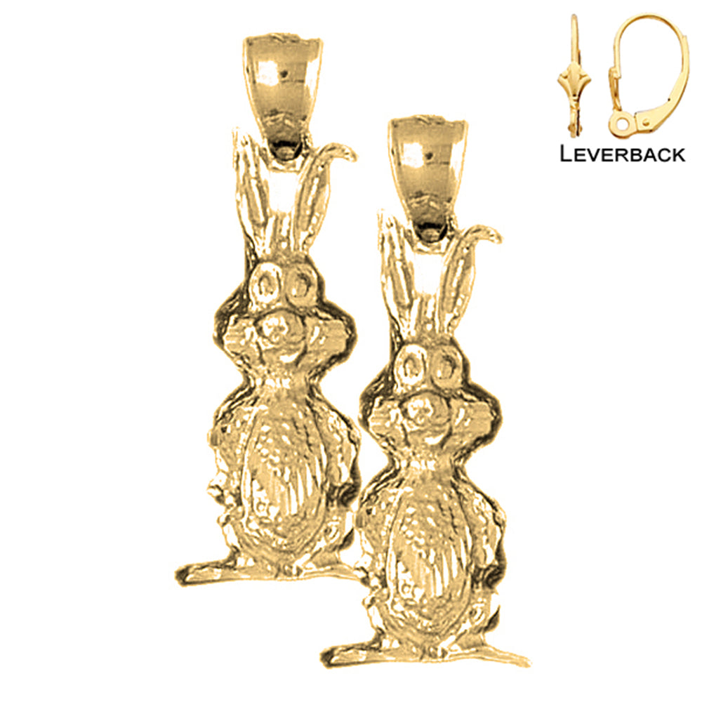 Yellow Gold-plated Silver 35mm Rabbit Earrings