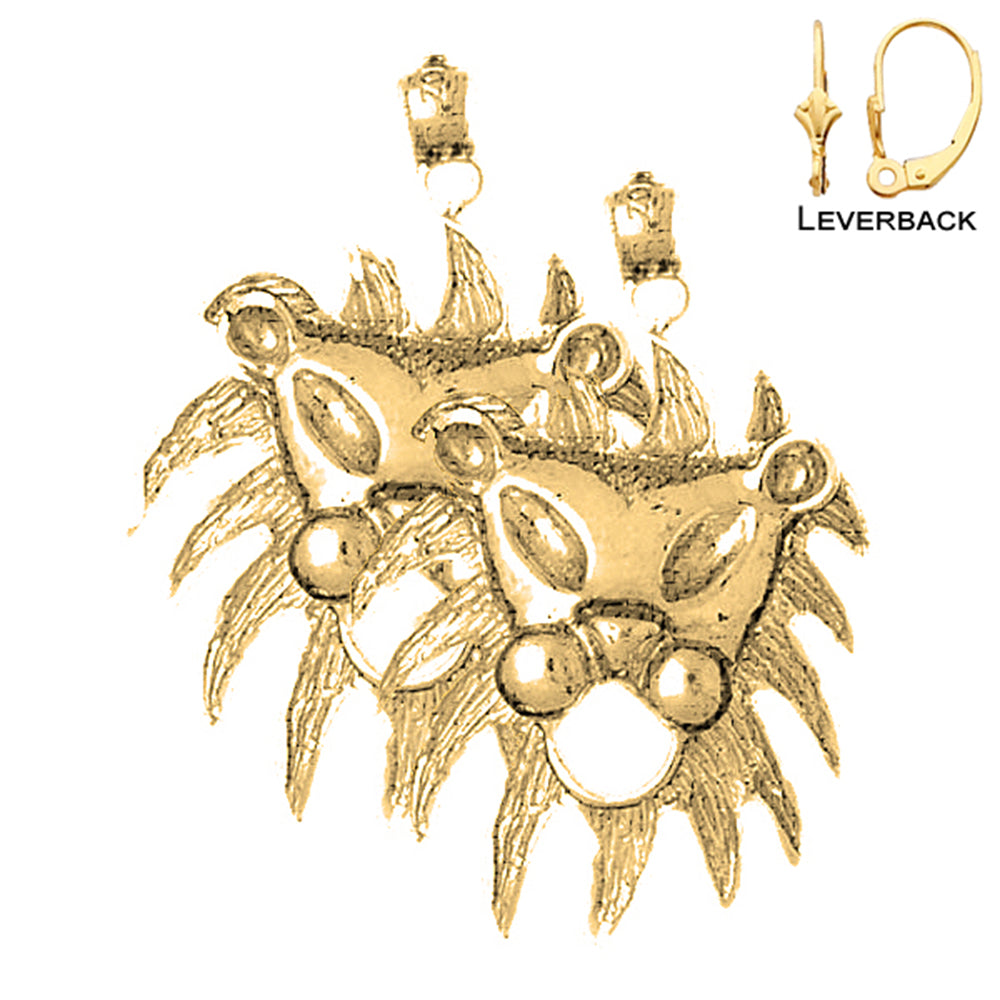 Yellow Gold-plated Silver 36mm Lion Head Earrings