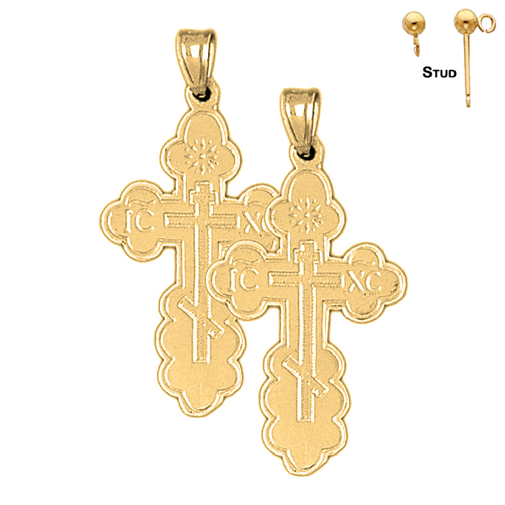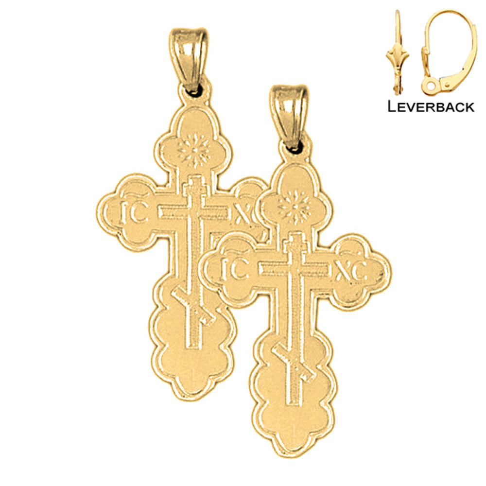 Yellow Gold-plated Silver 36mm St. Nicholas's Cross Earrings
