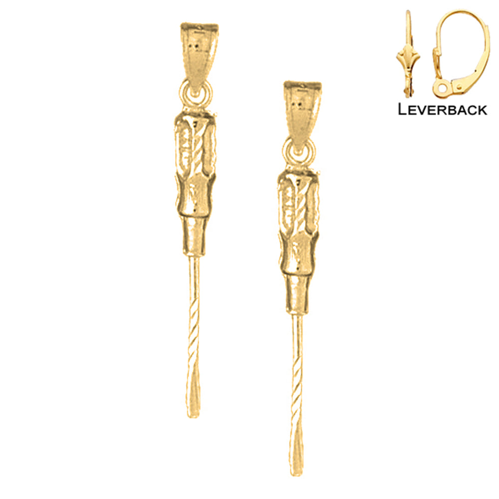 Sterling Silver 37mm 3D Screw Driver Earrings (White or Yellow Gold Plated)