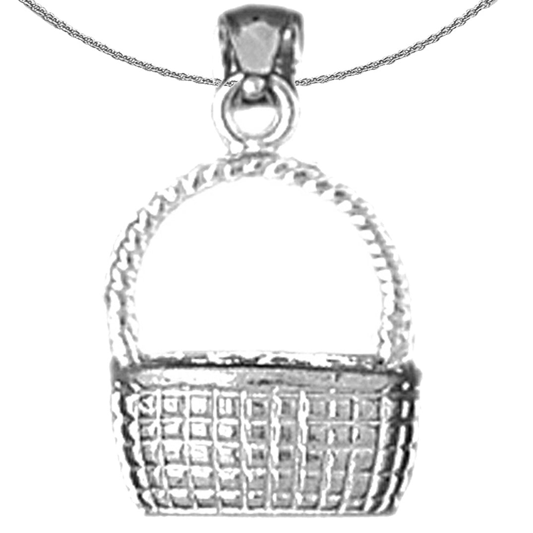 Sterling Silver 3D Basket Pendant (Rhodium or Yellow Gold-plated)