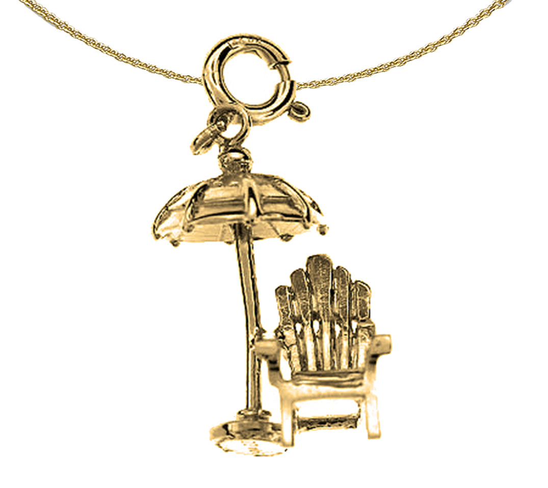 Sterling Silver 3D Beach Chair And Umbrella Pendant (Rhodium or Yellow Gold-plated)