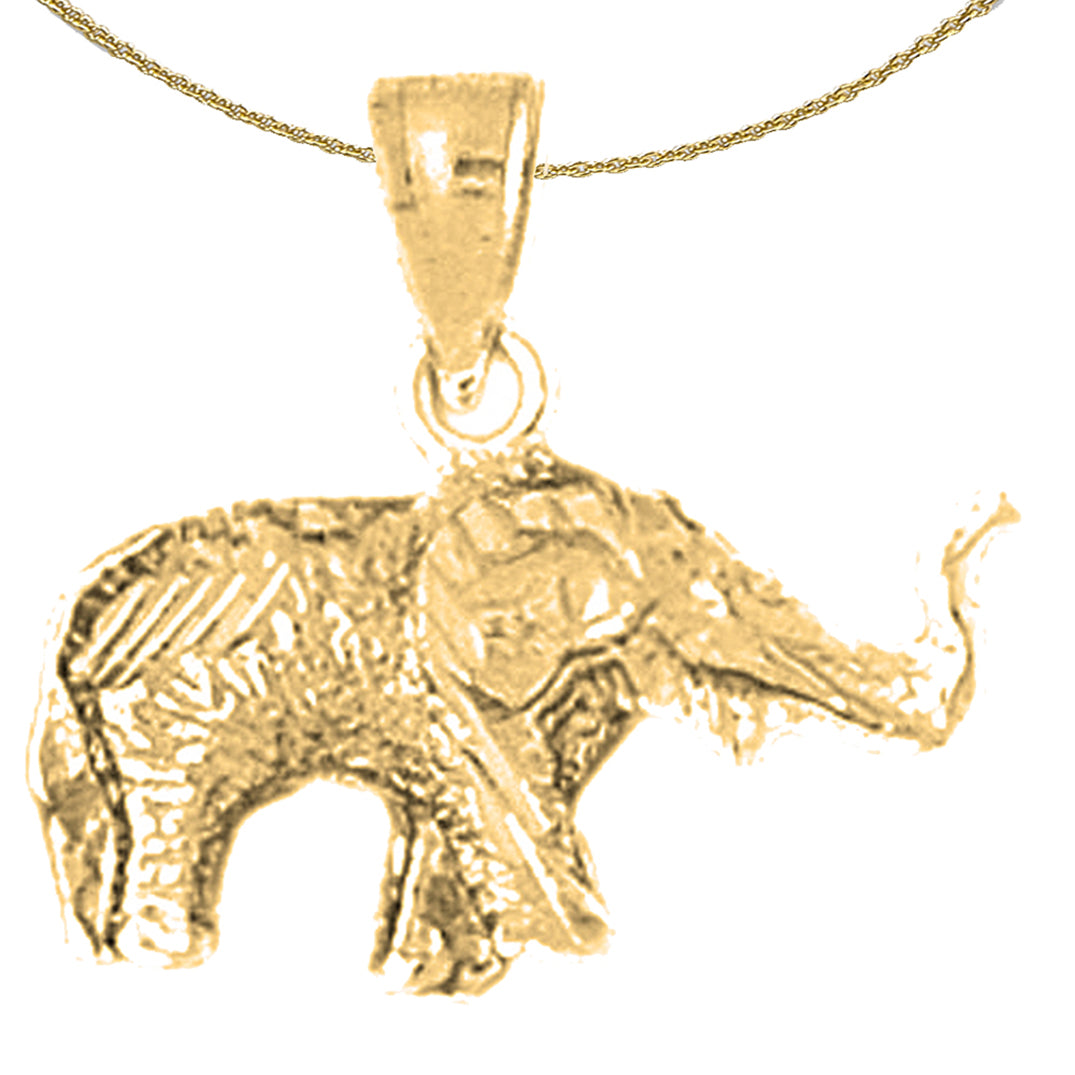 Sterling Silver 3D Elephant Pendant (Rhodium or Yellow Gold-plated)