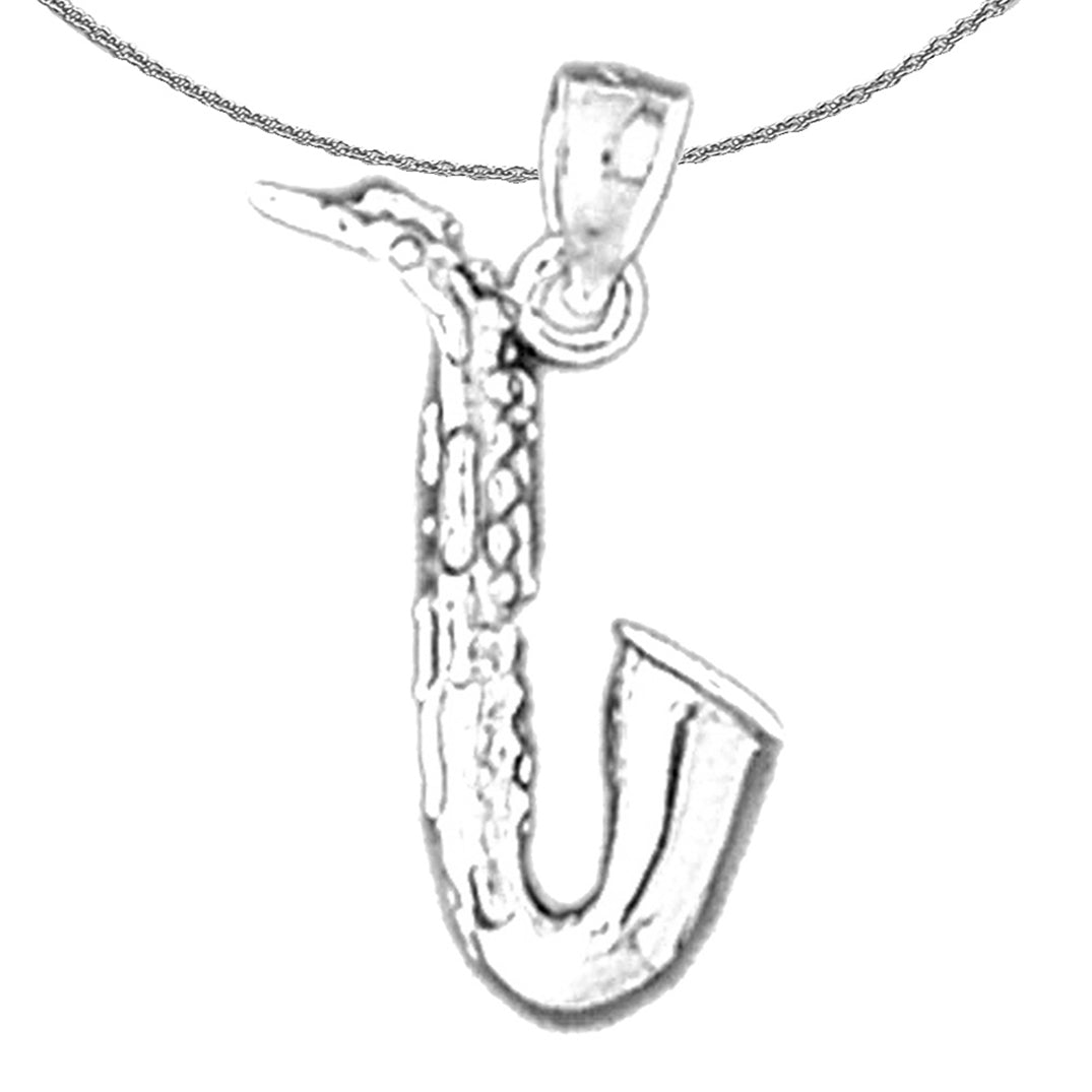 Sterling Silver 3D Saxophone Pendant (Rhodium or Yellow Gold-plated)
