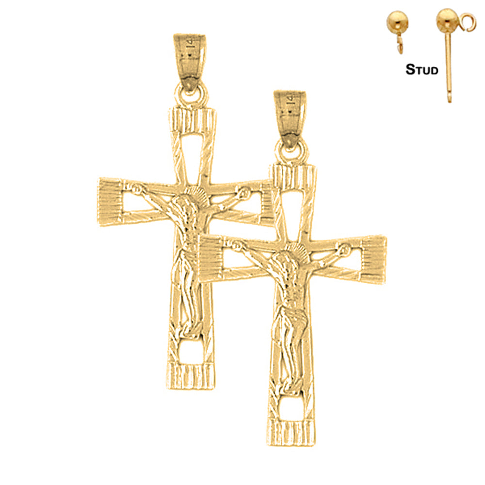 Sterling Silver 40mm Latin Crucifix Earrings (White or Yellow Gold Plated)