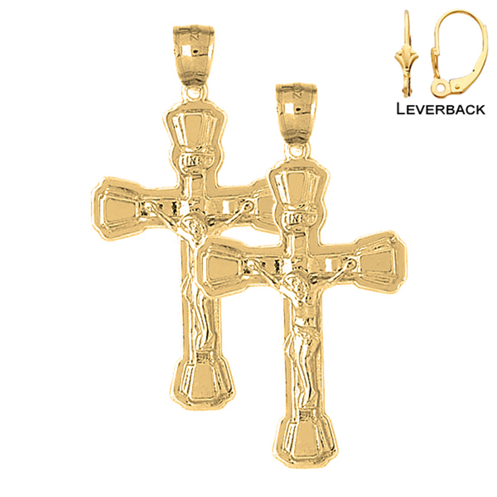 Yellow Gold-plated Silver 46mm INRI Crucifix Earrings