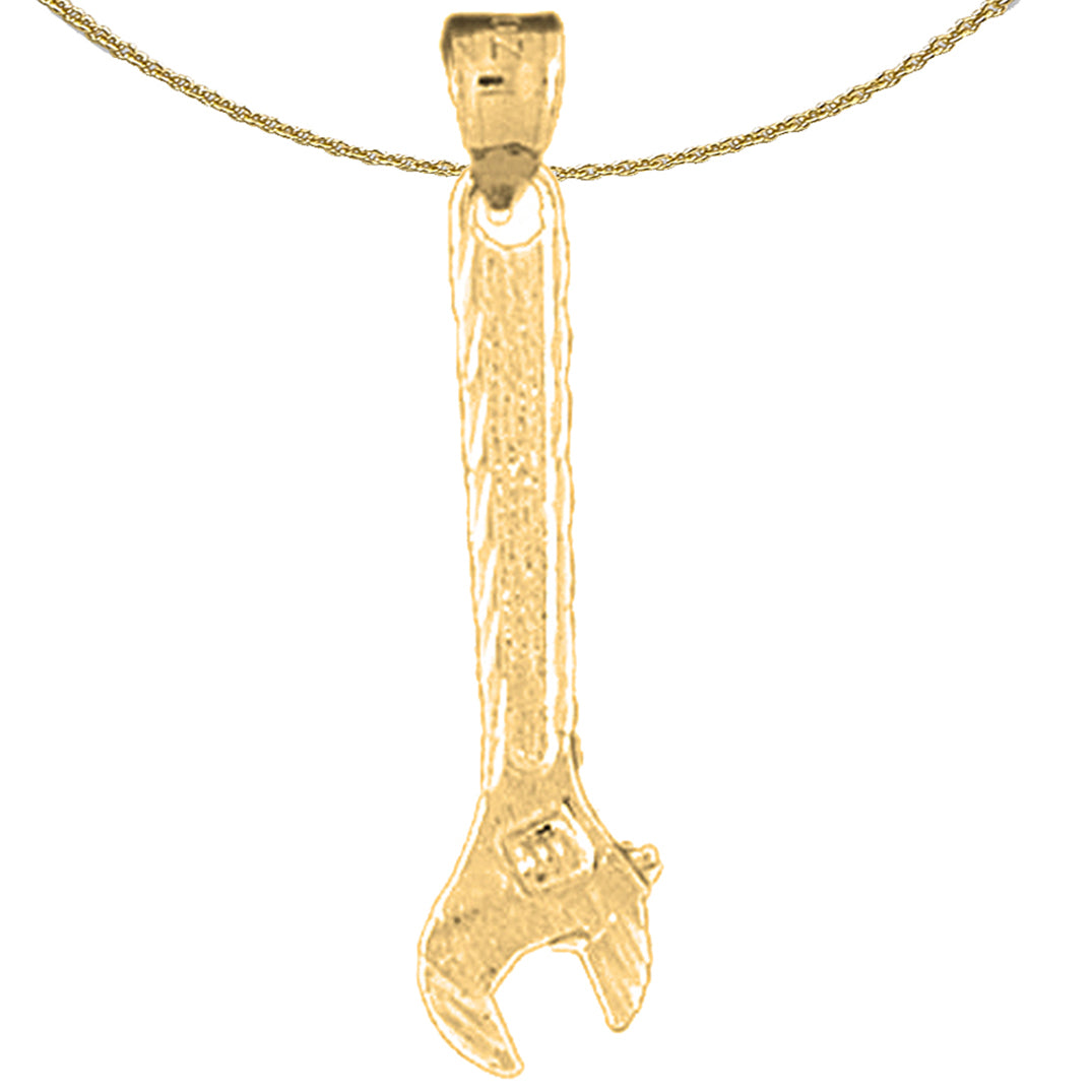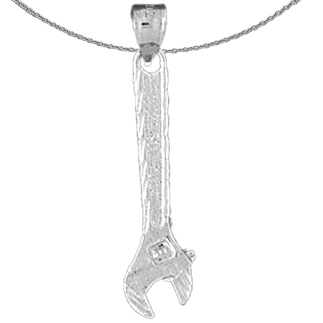 Sterling Silver Adjustable Wrench Pendant (Rhodium or Yellow Gold-plated)