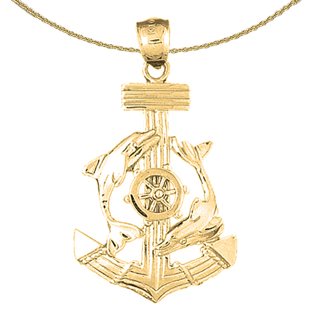 Sterling Silver Anchor, Ships Wheel, And Dolphin Pendant (Rhodium or Yellow Gold-plated)