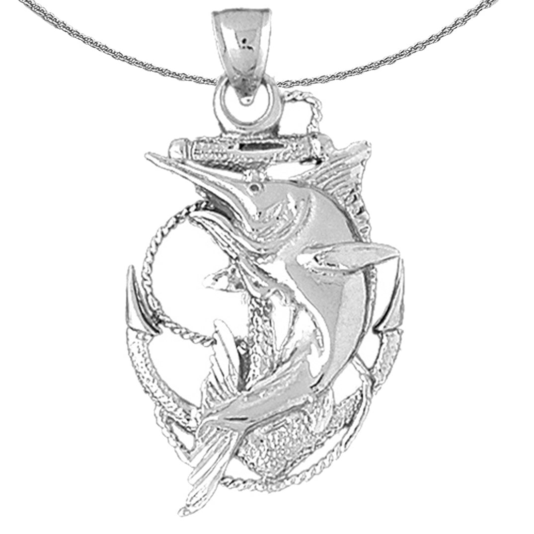 Sterling Silver Anchor With Marlin Pendant (Rhodium or Yellow Gold-plated)