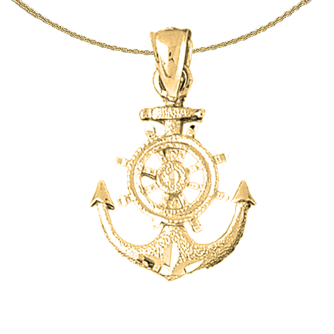 Sterling Silver Anchor With Ships Wheel Pendant (Rhodium or Yellow Gold-plated)