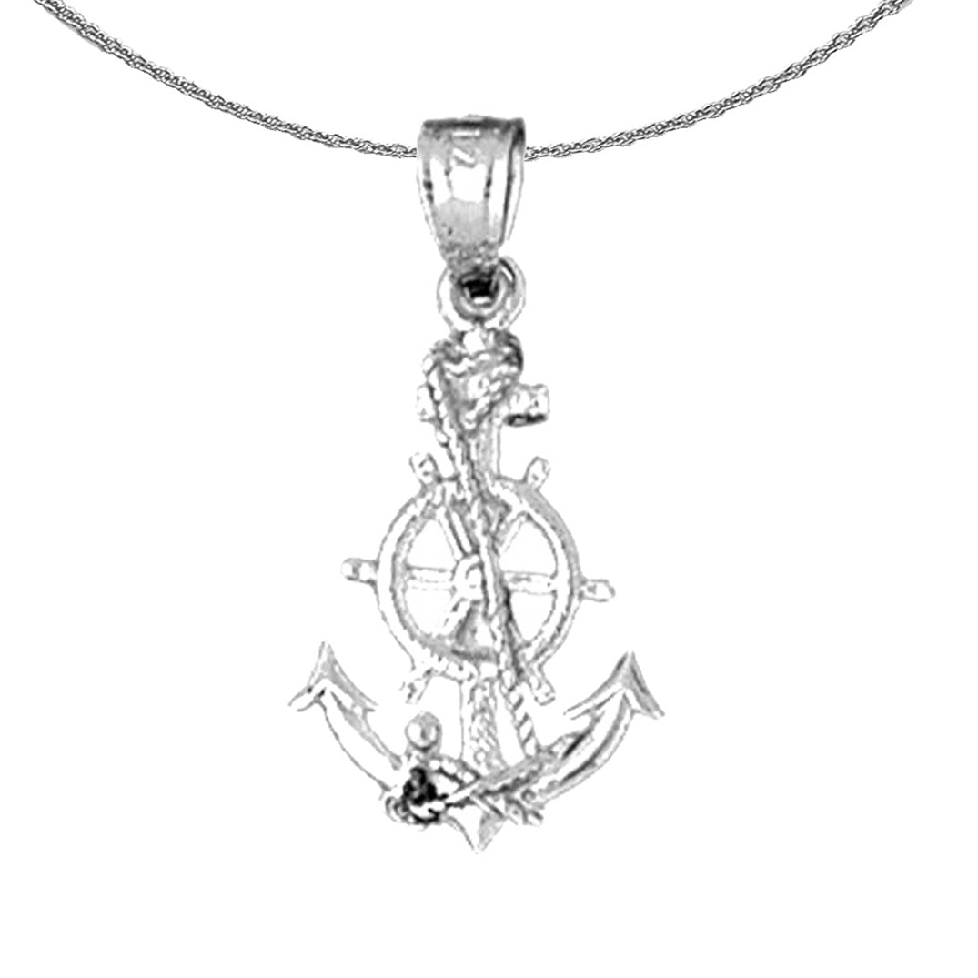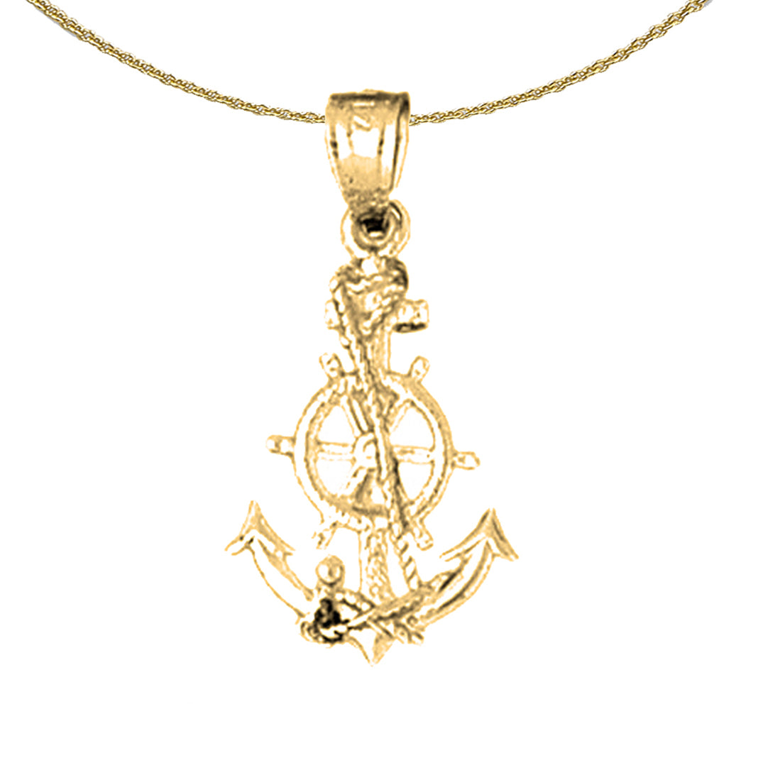 Sterling Silver Anchor With Ships Wheel Pendant (Rhodium or Yellow Gold-plated)