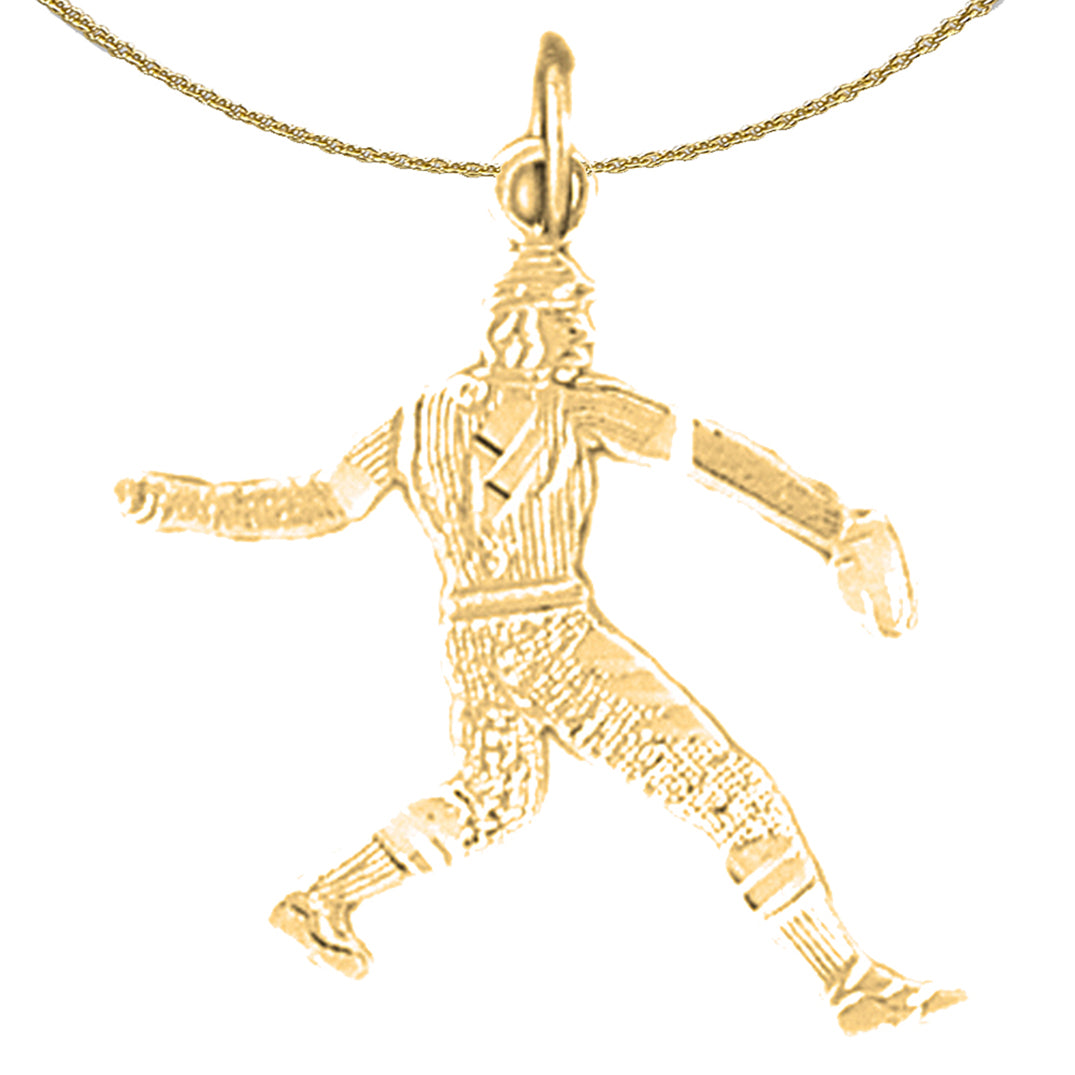 Sterling Silver Baseball Player Pendant (Rhodium or Yellow Gold-plated)