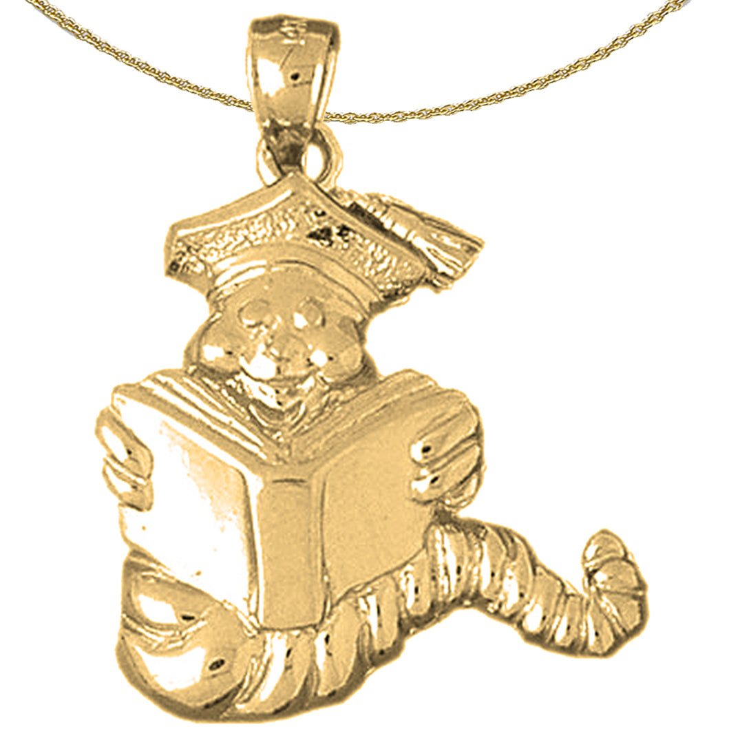 Sterling Silver Book Worm Pendant (Rhodium or Yellow Gold-plated)
