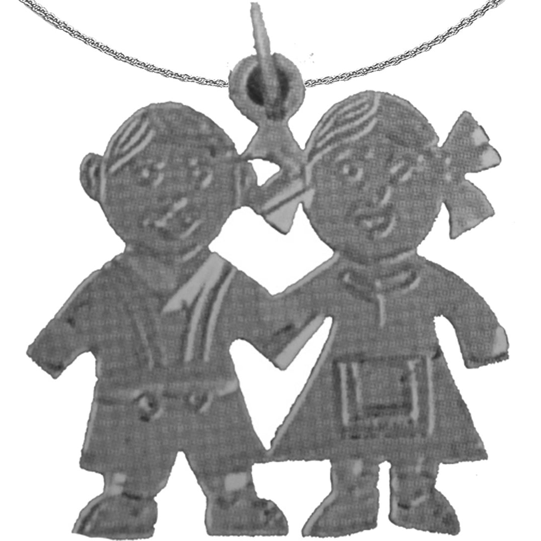 Sterling Silver Boy And Girl Pendant (Rhodium or Yellow Gold-plated)