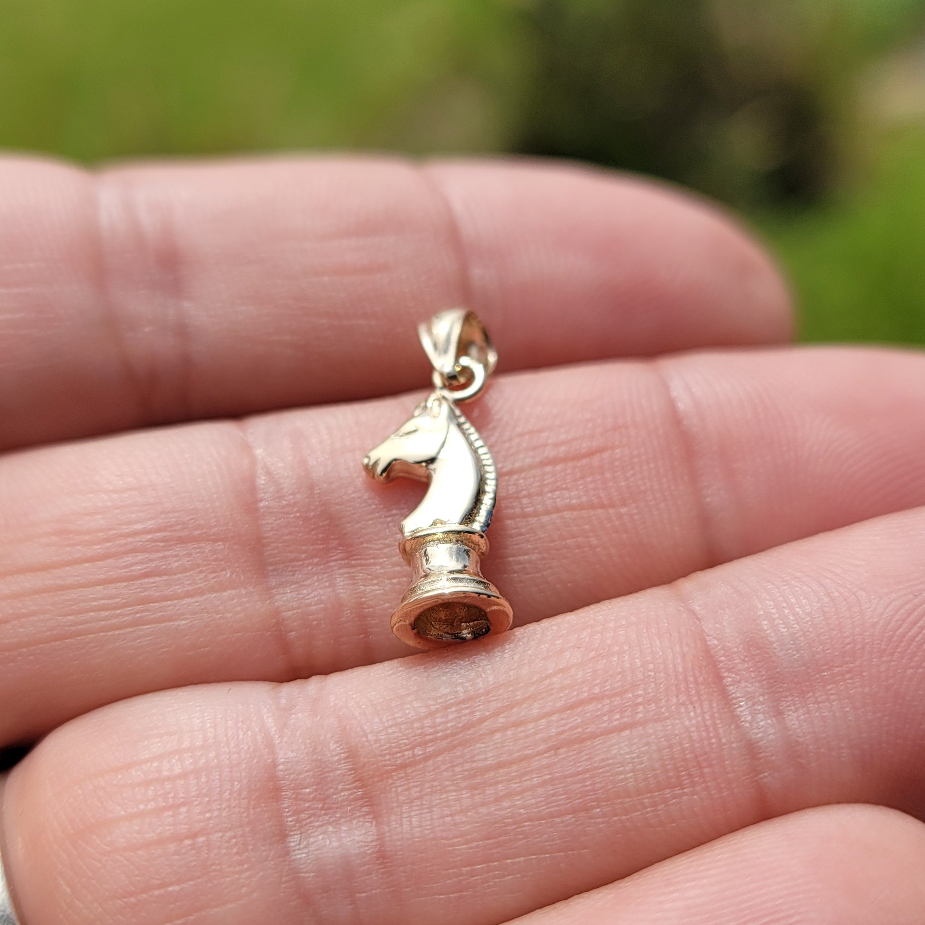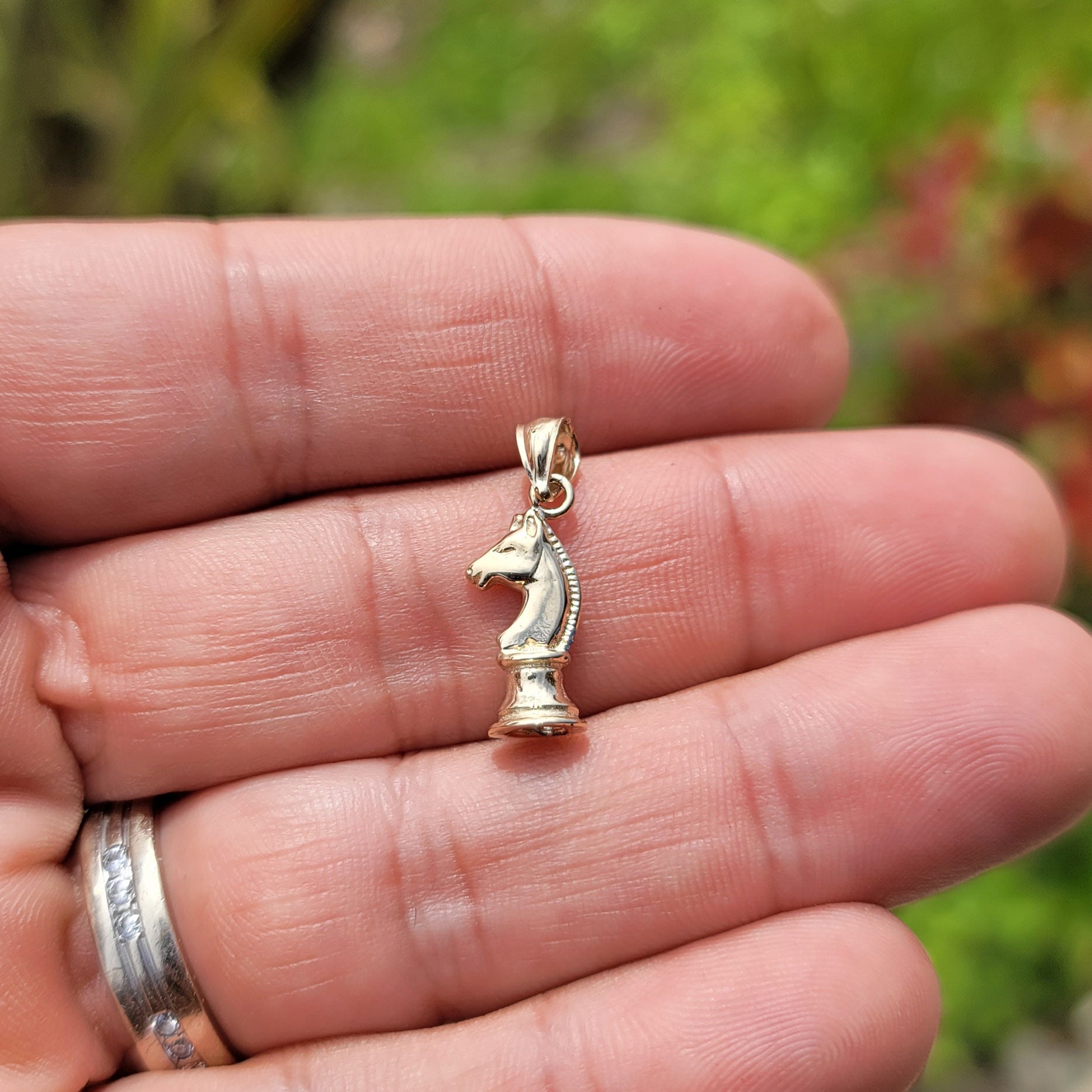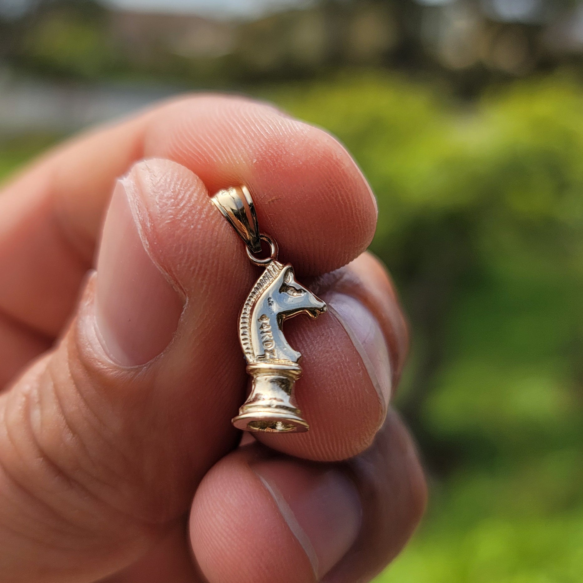 Sterling Silver Chess Knight Pendant (Rhodium or Yellow Gold-plated)
