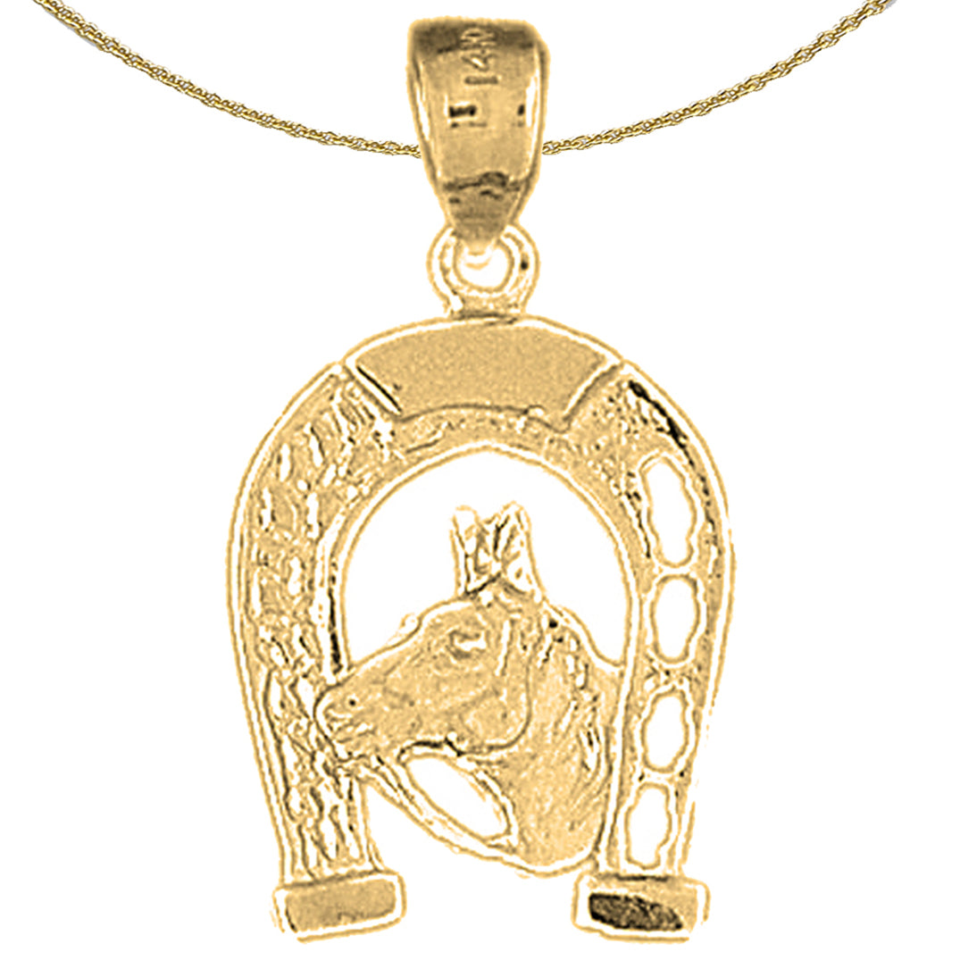 Sterling Silver Horseshoe With Horse Pendant (Rhodium or Yellow Gold-plated)
