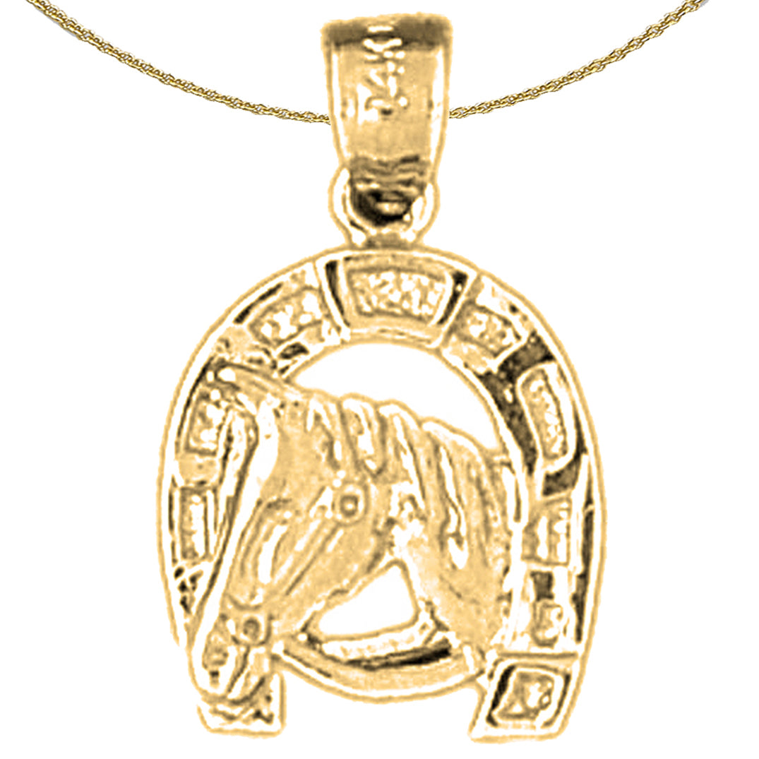 Sterling Silver Horseshoe With Horse Pendant (Rhodium or Yellow Gold-plated)