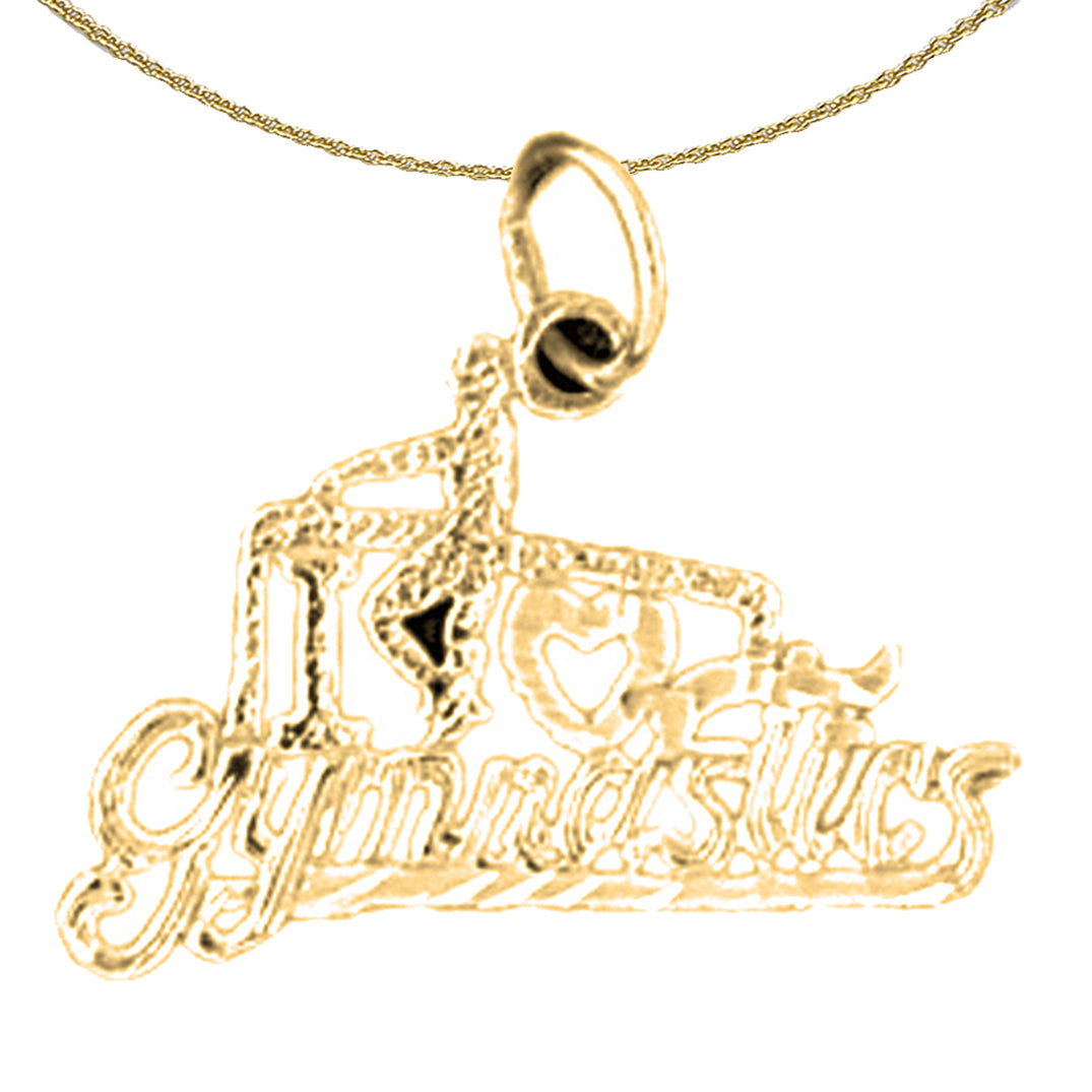 Sterling Silver I Love Gymnastics Pendant (Rhodium or Yellow Gold-plated)