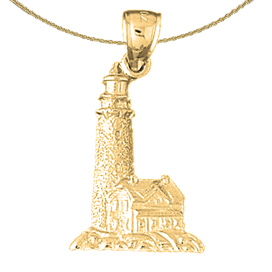 Sterling Silver Lighthouse Pendant (Rhodium or Yellow Gold-plated)