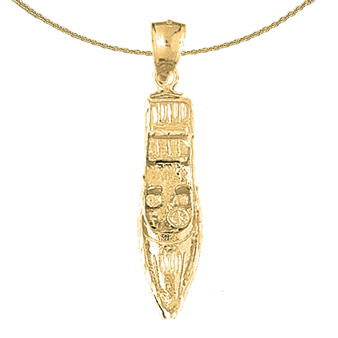 Sterling Silver Motor Boat Pendant (Rhodium or Yellow Gold-plated)