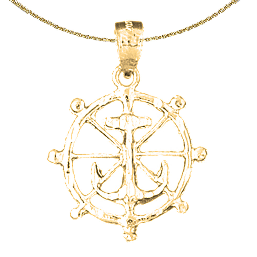 Sterling Silver Ships Wheel With Anchor Pendant (Rhodium or Yellow Gold-plated)