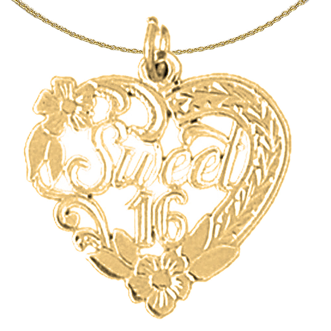 Sterling Silver Sweet 16 Pendant (Rhodium or Yellow Gold-plated)