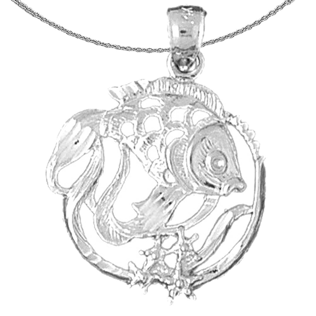 Sterling Silver Tropical Fish And Coral Pendant (Rhodium or Yellow Gold-plated)
