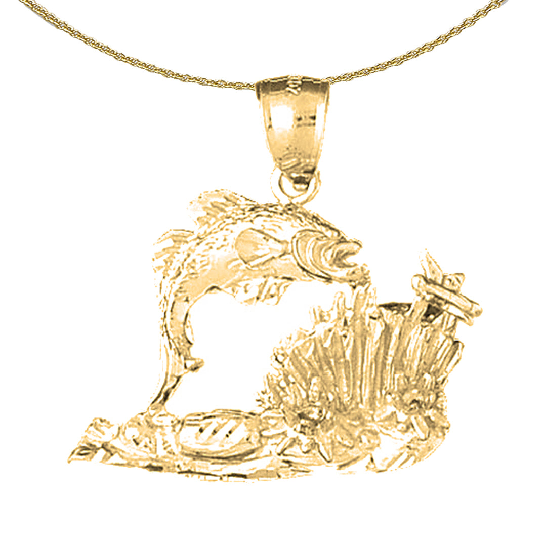 Sterling Silver Tropical Fish And Coral Pendant (Rhodium or Yellow Gold-plated)