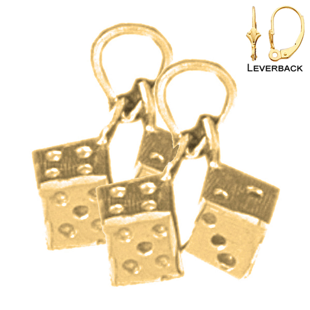 This is an elegant 14k yellow gold 14mm dice earrings. This 14k yellow gold earrings measures 14 mm in length by 10 mm width. JewelsObsession creates all gold jewelry in our state of the art manufacturing facility.