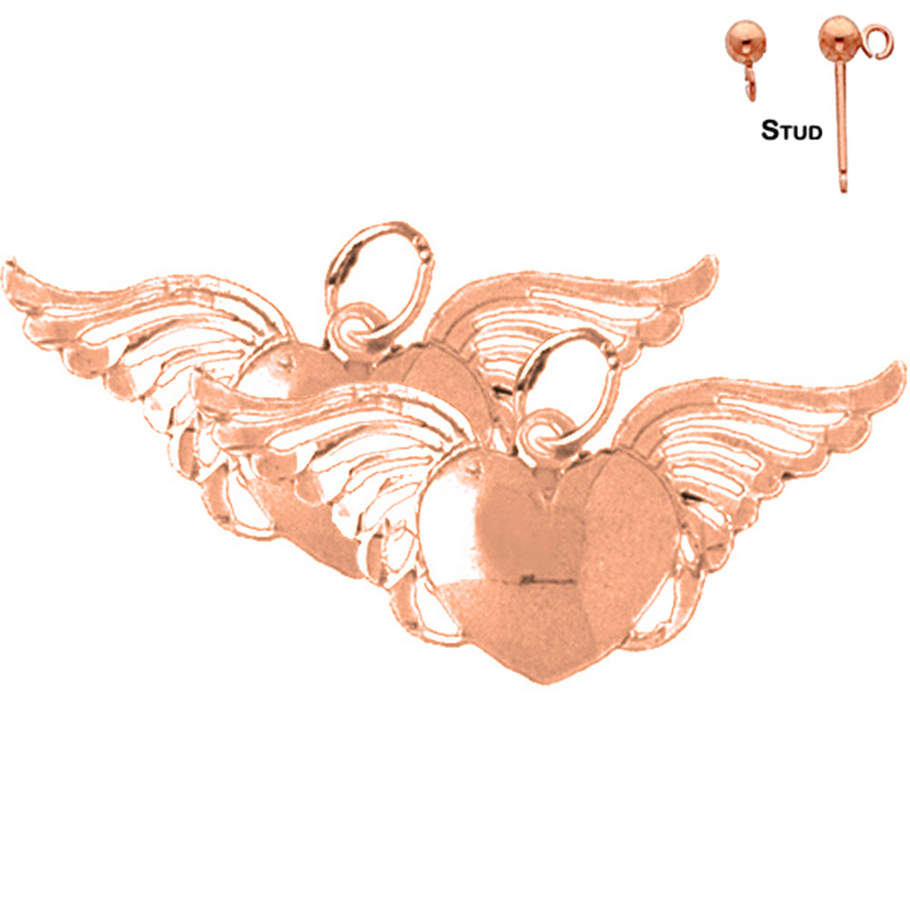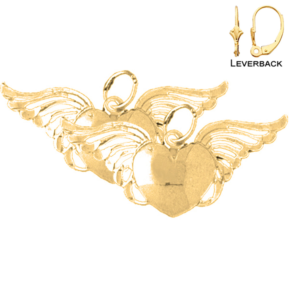 14K or 18K Gold 15mm Heart With Wings Earrings