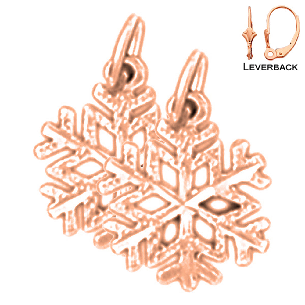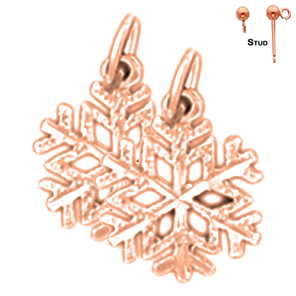 This is a gorgeous 14k yellow gold 15mm snow flake earrings. This 14k yellow gold earrings measures 15 mm in length by 10 mm width. JewelsObsession creates all gold jewelry in our state of the art manufacturing facility.