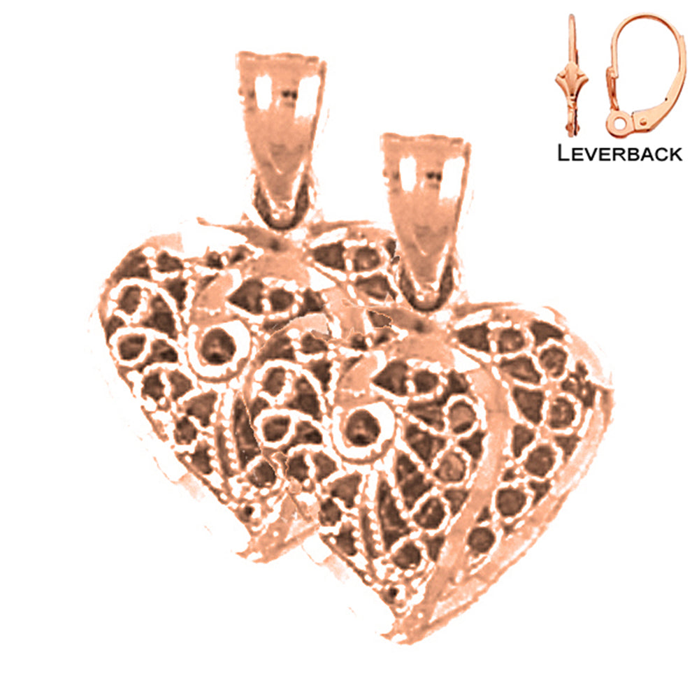 14K or 18K Gold 3D Filigree Heart Earrings