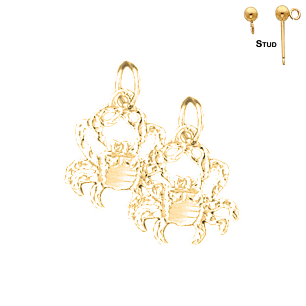 This is a stunning 14k yellow gold 16mm crab earrings. This 14k yellow gold earrings measures 16 mm in length by 12 mm width. JewelsObsession creates all gold jewelry in our state of the art manufacturing facility.