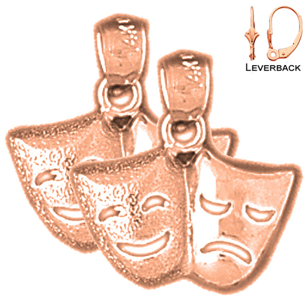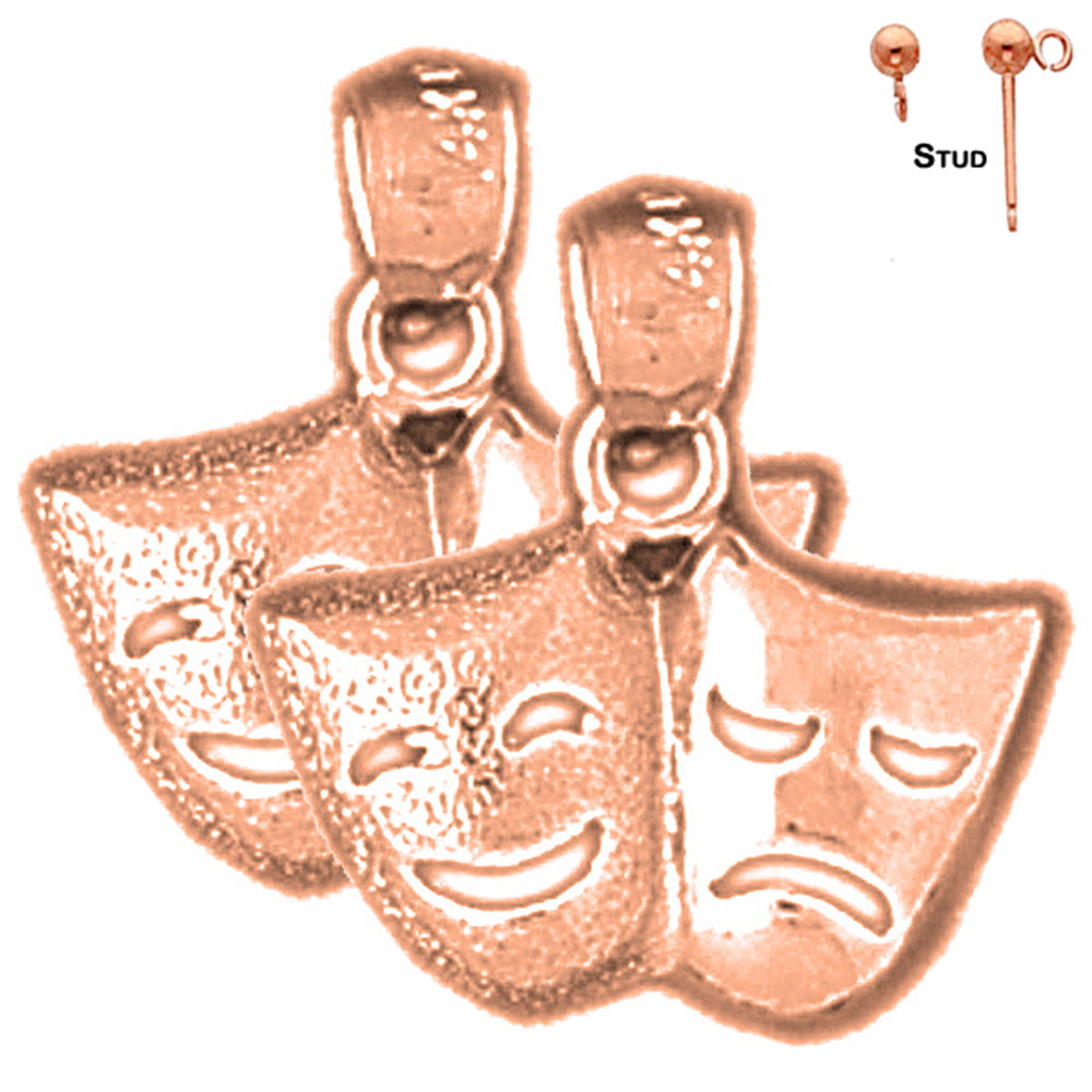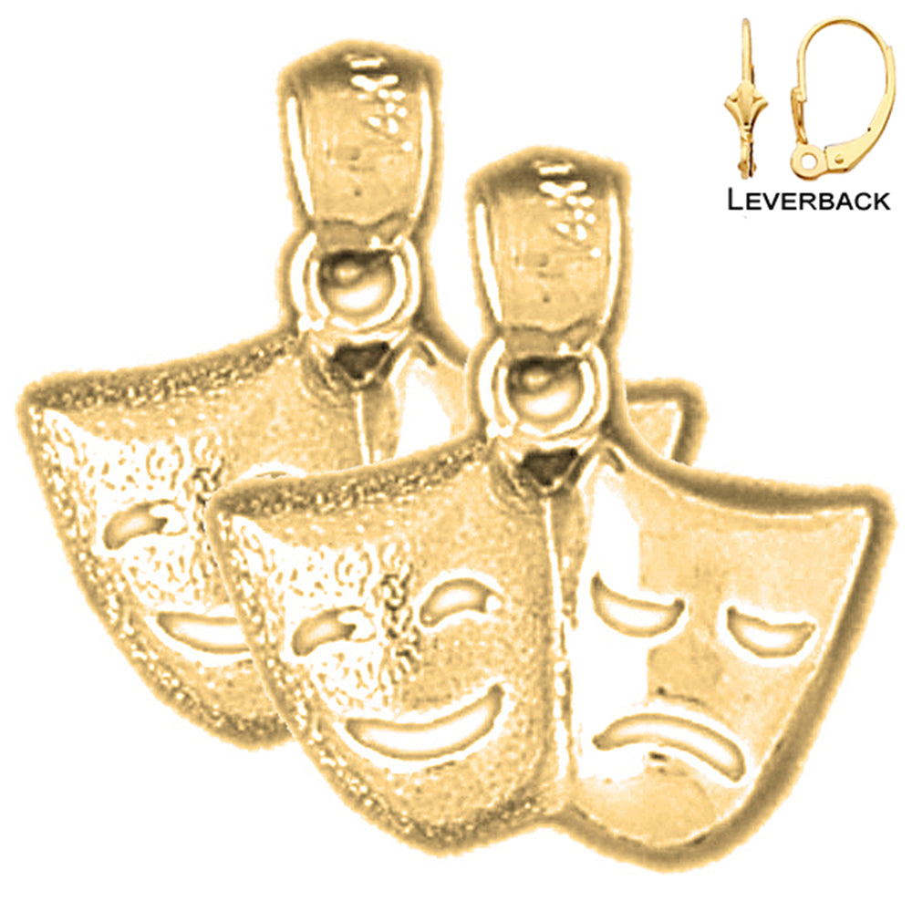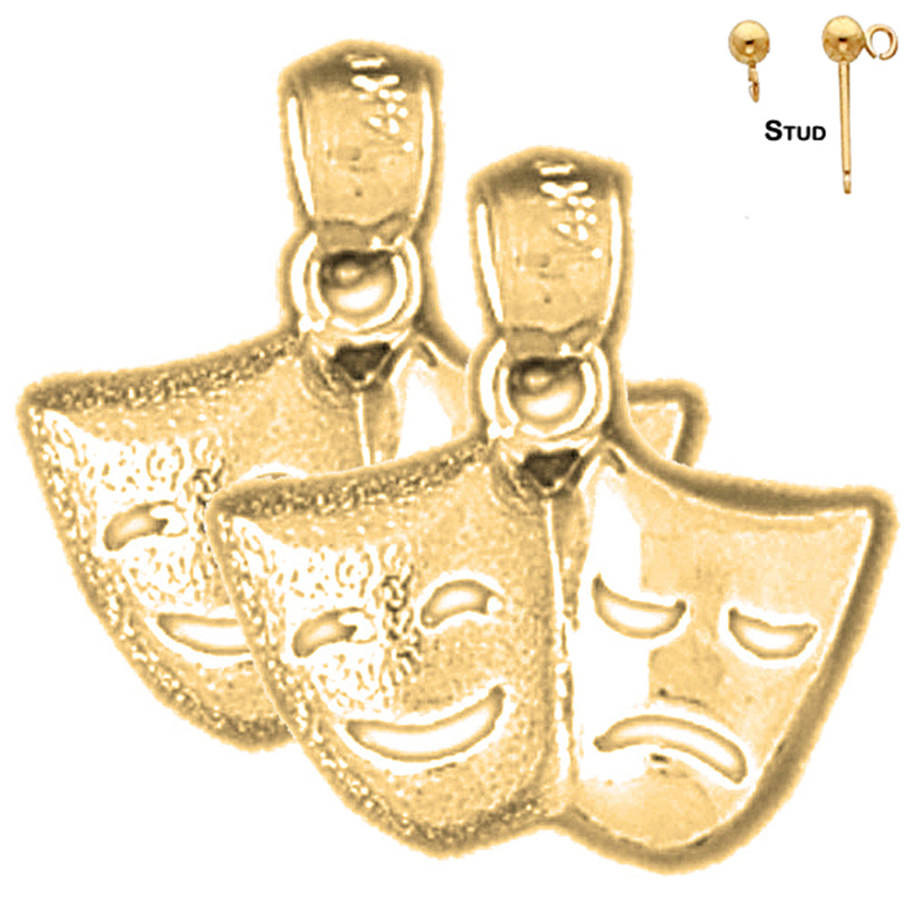 This is a gorgeous 14k yellow gold 16mm drama mask, laugh now, cry later earrings. This 14k yellow gold earrings measures 16 mm in length by 16 mm width. JewelsObsession creates all gold jewelry in our state of the art manufacturing facility.